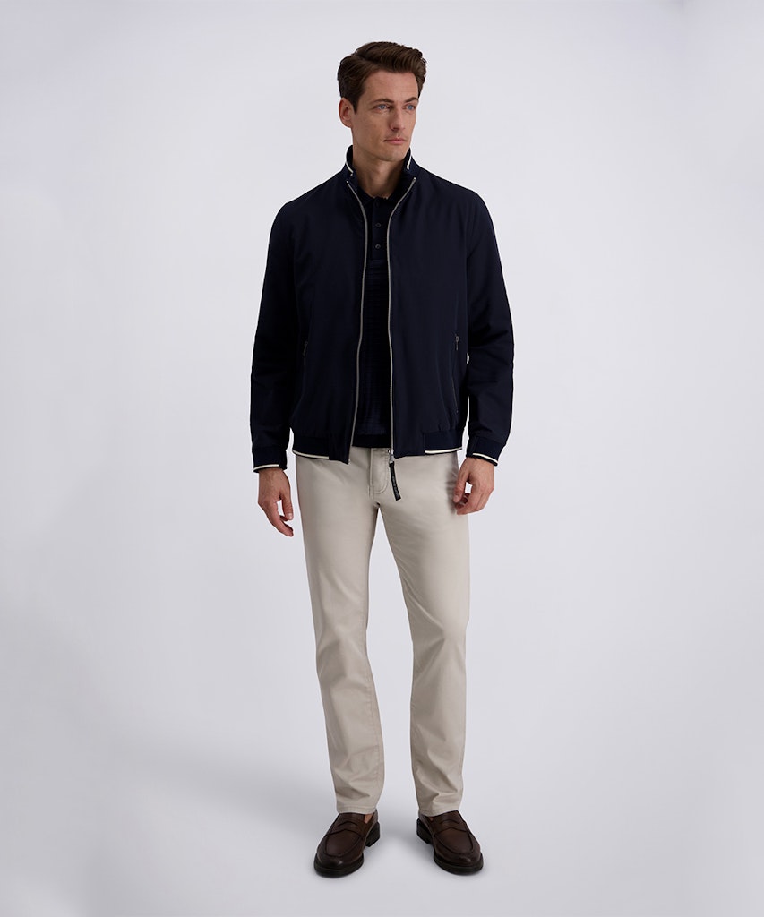 Do bluzy w stylu smart casual pasują chinosy, wełniane joggery i proste, ciemne jeansy – pod warunkiem, że są dobrze dopasowane. Na nogach najlepiej sprawdzą się skórzane sneakersy, mokasyny albo casualowe derby. Sportowe buty całość psują.